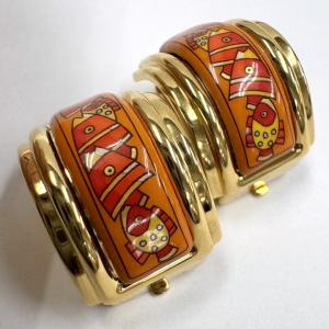 【HERMES】エルメス エマイユ デザイン・イヤリング 魚群 七宝焼き×GP オレンジ×ゴールド金具 【中古】【代金引換不可】/kt16196ik