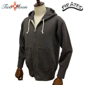 TWO MOON トゥームーン lot 16504 (杢ダークグレー 同系色コンビカラー) 吊り編み 丸胴 針抜きリブ フリーダムスリーブ フルジップパーカ