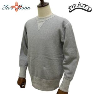 TWO MOON トゥー・ムーン lot 92022 (杢グレー) 両V 長リブ 吊り編み 丸胴 裏起毛 セットインスリーブ スウェットシャツ (トレーナー)
