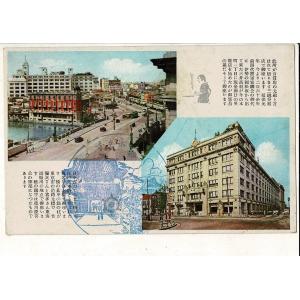 三越百貨店/日本橋 泉岳寺観光スタンプ レトロ絵葉書 東京都 SYR005tk-2507