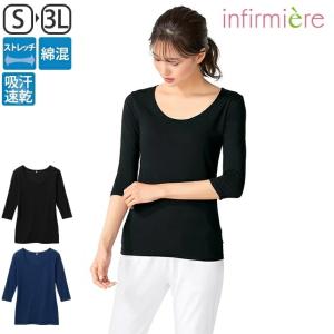 スクラブインナー 七分袖 綿 ストレッチ レディース 白衣 ナース服 医療 アンファミエ 肌に優しい体感温度コントロールスクラブインナー(七分袖)