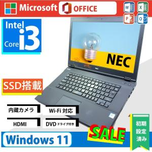 中古ノートパソコン Windows11 Office2024搭載 中古パソコン カメラ DVD搭載 Core i3-7100U 4GB メモリ 128GB SSD HDMI USB3.0 ノートパソコン NEC VX-3
