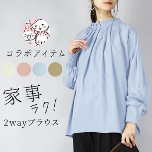 ブラウス 長袖 レディース 白 フォーマル オフィス ハイネック 2way トップス 体型カバー 60代 50代 40代 30代 20代 きれいめ ポケット 春 秋 冬 おしゃれ