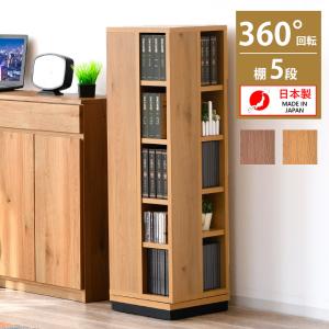 本棚 回転式 5段 スリム 漫画 CD DVD ラック 大容量 コミックラック ブックラック 本収納 収納棚 タワー CD収納 DVDラック 書棚 おしゃれ ブラウン コンパクト
