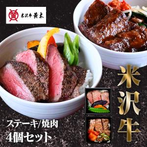 冷凍弁当 高級 米沢牛黄木 ステーキご飯 焼肉ご飯 4食 セット 各2食 牛肉 ステーキ 肉 焼肉 和牛 米沢牛 黄木 お歳暮 ギフト * (TD) (代引不可)