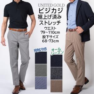 裾上げ済み メンズ ストレッチパンツ 春夏接触冷感とオールシーズンの2タイプ ウエストストレッチ 股下68cm 股下73cm 送料無料 メール便