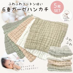 6重ガーゼハンカチ 5枚セット ベビー 赤ちゃん ガーゼ 綿 コットン100% 人気 ふわふわ やわらか 汗拭き よだれ拭き