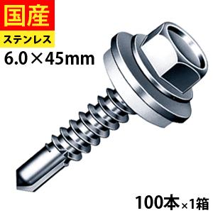 ドリルビス ヘックス ビス ネジ セルフドリルビス 鉄板ビス 六角 ロッカク ワッシャー SHJC45AZW ジャックポイント ステンレス 6 × 45 小箱 100本