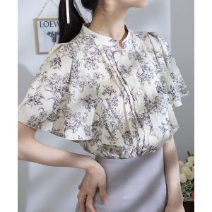 ブラウス シャツ パールボタン ピンタック フレア半袖 クロップド ブラウス レディース