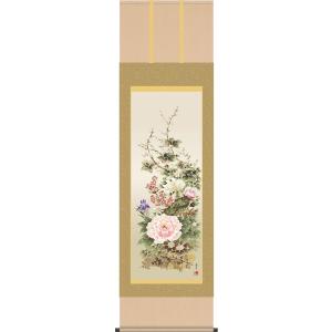掛け軸 掛軸 年中掛け 季節飾り 四季花 尺五 北山歩生 四季掛け 床の間 和室 KZ2A1-072 洛彩緞子 最高級筋廻仕様 桐箱入り