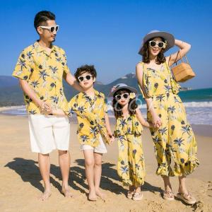 アロハシャツ 親子コーデ 花柄 メンズ レディース 子ども用 ペアルック 親子 お揃い ワンピース リゾート 親子リンクコーデ 夏 旅行 海辺