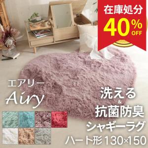 在庫処分 特価 ラグ ハート 130×150cm 洗える 抗菌 防臭 滑り止め付き おしゃれ 北欧 かわいい シャギーラグ マイクロファイバー / エアリー ハート型