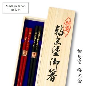 輪島塗 箸 梅沈金 夫婦箸 21.5cm/23.5cm 輪島塗 本物 アテ 日本製 国産 木製 お箸 和モダン ギフト 伝統工芸 漆器 漆 海外土産 送料無料