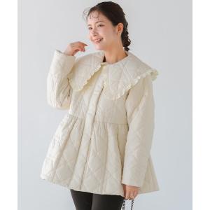 コート アウター ビッグカラーキルティングペプラムコート レディース