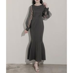 ワンピース シアーボリュームスリーブマーメイドワンピース