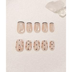 ネイルチップ ネイルシール 水光ネイルシャンパンゴールドブラックフレンチドットストーンショートスクエアネイルチップ