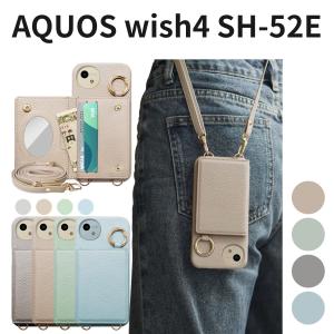 AQUOS wish4 SH-52E ケース 手帳型 ショルダー スマホケース SH-52E/A402SH/SH-M27 対応 ミラー付 リング 収納 カード ポーチ 肩掛け 斜め掛け