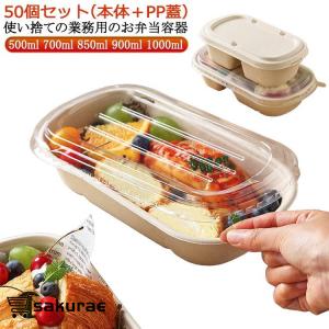 容器 おしゃれ お弁当 使い捨て 透明蓋 容器 弁当箱 弁当箱 セット 冷凍 容器 50個セット/蓋付き テイクアウト 紙バック 紙容器 クラフト紙