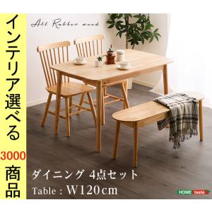 ダイニングテーブル+チェア+ベンチ 119×74×74cm 四角形 3脚 ナチュラル色 YHSDS4