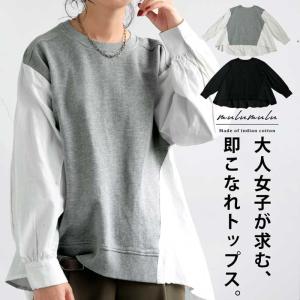 インド綿 裏毛切替トップス トップス レディース 長袖 送料無料・500ptメール便可