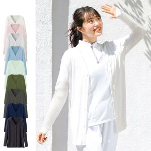 白衣 女性 レディース 医療事務 受付 ナース 薄手 接触冷感 吸汗速乾 白 黒 さらさらクール UVカットカーディガン (ロング丈)