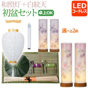 初盆セット 新盆セット (一対入り) 和照灯 LED コードレス+白紋天セット (W-7) 盆提灯 白提灯 灯籠