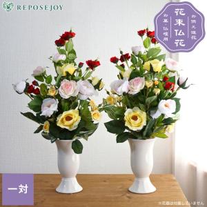 仏花 造花 お墓用 一対 ローズ バラ 薔薇 2束 お供え 墓 墓花 お悔やみ お盆 新盆 初盆 お彼岸 法事 供花 おしゃれ 春 夏 秋 冬