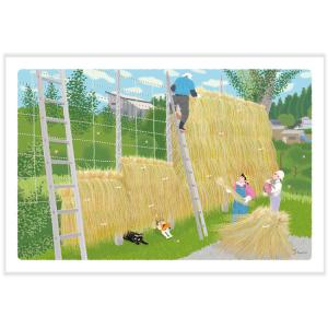 たびねこ 秋柄 ポストカード 秋の天日干し / 可愛い 猫 ネコ 四季 風景 はがき もりとしのり