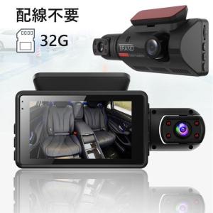 ドライブレコーダー 360度 車内カメラ 配線不要/前後2カメラ 小型 3インチIPS液晶搭載 駐車監視 車載カメラ カー内装用品 32Gカード付き