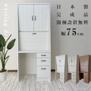 ライティングデスク 学習机 折りたたみ コンパクト 省スペース プレミアムライティングデスク 幅75cm 書斎机 デスク 入学祝い LEDライト 日本製 PCデスク 完成品