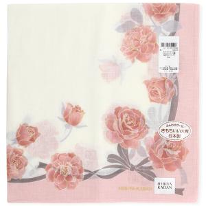 ヒビヤカダン 大判 プリントハンカチ(58cm)バラとリボン ピンク
