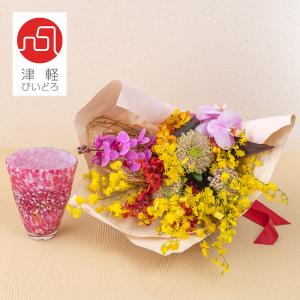 日比谷花壇公式 お正月 津軽びいどろ「弘前桜 花あかり」と花束のセット