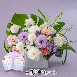 日比谷花壇公式 お供え 花 お供え用 線香付 アレンジメント「花清香(はなきよか)」 お供え花 供花 法事 仏事 喪中 お彼岸 仏花 お悔み 命日
