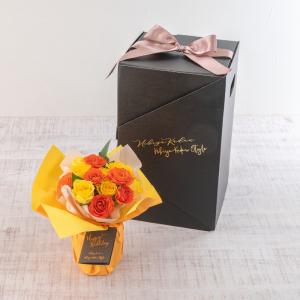 日比谷花壇公式 誕生日 花 メロディボックス花束「ローズハッピーバースデー」(イエロー・オレンジ)【沖縄届不可】 記念日 お見舞い 出産祝い 送別 送料無料