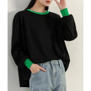 tシャツ 「旬のぽこぽこ質感」長袖バイカラー配色オーバーサイズワッフルリブトップス レディース レディース