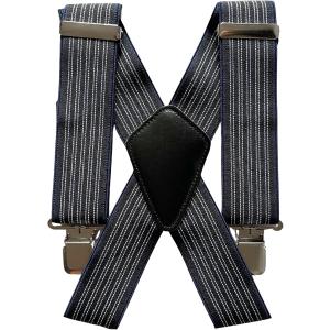 サスペンダー メンズサスペンダー X型50mm幅広 長さ最大110cm 男女兼用 4クリップ 紺(紺(縞柄), Free Size)