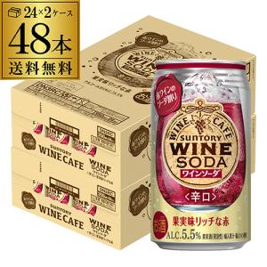 チューハイ サワー 送料無料 サントリー ワインカフェ ワインソーダ 赤 350ml缶×48本(24本×2ケース) ワイン 赤ワイン WINE SODA 長S