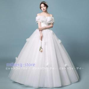 ウェディングドレス ロングドレス 格安 パーティードレス 白 ドレス プリンセスドレス オフショルダー 二次会 花嫁 結婚式 演奏会 発表会 可愛い ブライダル