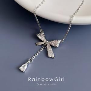ネックレス レディース リボン 大人可愛い シルバー925 プラチナ仕上げ 人気 女性 ギフト 記念日 誕生日プレゼント ホワイトデーお返し