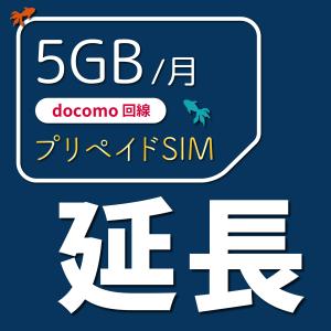 【延長専用】Docomoプリペイド SIM カード 5GB/月 1ヶ月延長 30日間 データ通信 docomo MVNO 4G高速通信 テレワーク 短期 旅行 入院 格安SIM