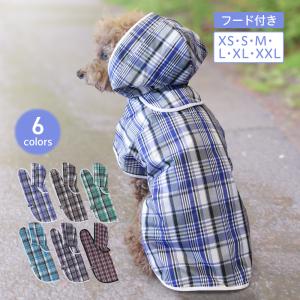犬 レインコート 着せやすい 選べる6colors 小型犬 中型犬 チェック柄 レインウェア ウインドブレー