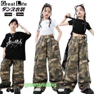黒 白 Tシャツ カーゴパンツ キッズ ダンス衣装 セットアップ おしゃれ 女の子 男の子 韓国 k-pop かっこいい かわいい ゆったり 半袖 へそ出し トップス