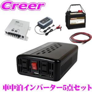 CLEZEED 車中泊5点セット 500W 疑似正弦波インバーター バッテリー 充電器 走行充電器 ケーブル