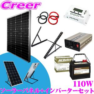 【ソーラーパネル入門】 接続簡単スターターキット 接続ケーブル類付属 110Wソーラーパネル 300W正弦波インバーター ソーラー設置架台