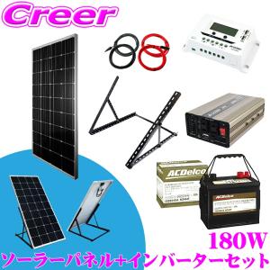 【ソーラーパネル入門】 接続簡単スターターキット 接続ケーブル類付属 180Wソーラーパネル 300W正弦波インバーター ソーラー設置架台
