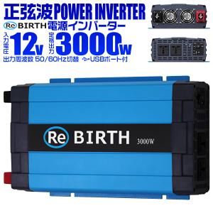 正弦波インバーター バッテリー ポータブル電源 防災 非常用電源 車中泊 アウトドア 12v 定格3000W DC12V / AC100V 50Hz/60Hz切替可能 USBポート付