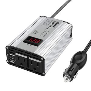 インバーター 300W 車 修正正弦波 DC 12Vを AC 100Vに変換 周波数55Hz ディスプレイつき 2口のUSBポート シガーソケッ