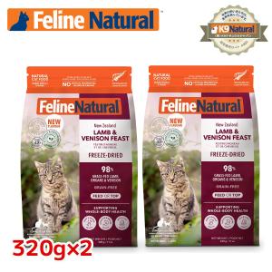 2袋 フィーラインナチュラル 猫用 フリーズドライ ラム&ベニソン 320g×2(100%ナチュラル 生食 キャットフード 猫用総合栄養食 FelineNatural)