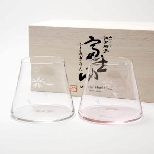 【手づくり江戸硝子】 ビールを注ぐと富士山が現れる! 田島硝子 富士山 宝永グラス ペア 木箱付 クリア+さくら色