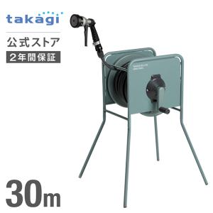タカギ ホースリール 30m 散水 洗車 掃除 園芸 ガーデニング 4水形 脚付き 防藻 ステンレス リフトメタル グリーン RF330GY 内径12mm takagi 公式 2年間保証